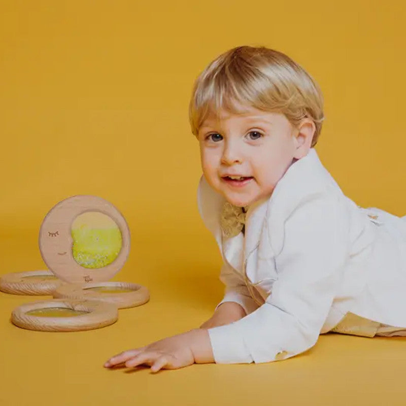 A little piece of the galaxy at the tip of your fingers!- all the magic of Petit Boum bottles but inside a beautiful FSC beech wood moon-shaped frame.